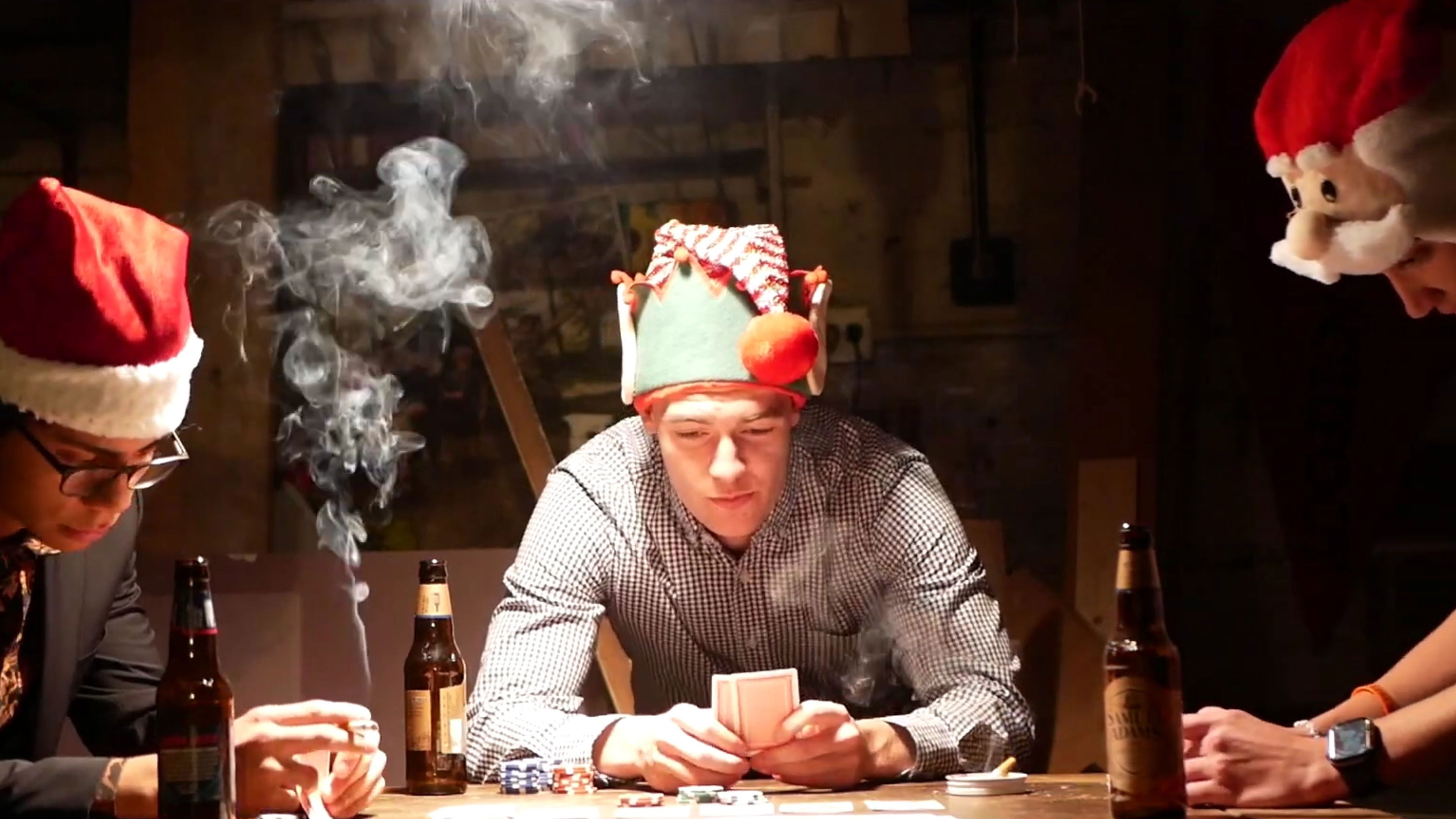 A man forgets his worries and gambles on Christmas Eve.